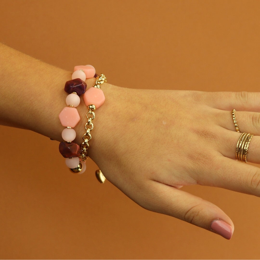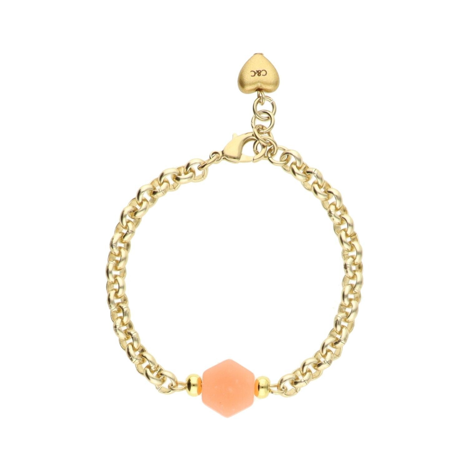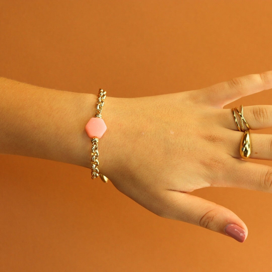 Armband Little Hexagon Chain Bracelet Schakelarmband met Vintage Rose Kraal