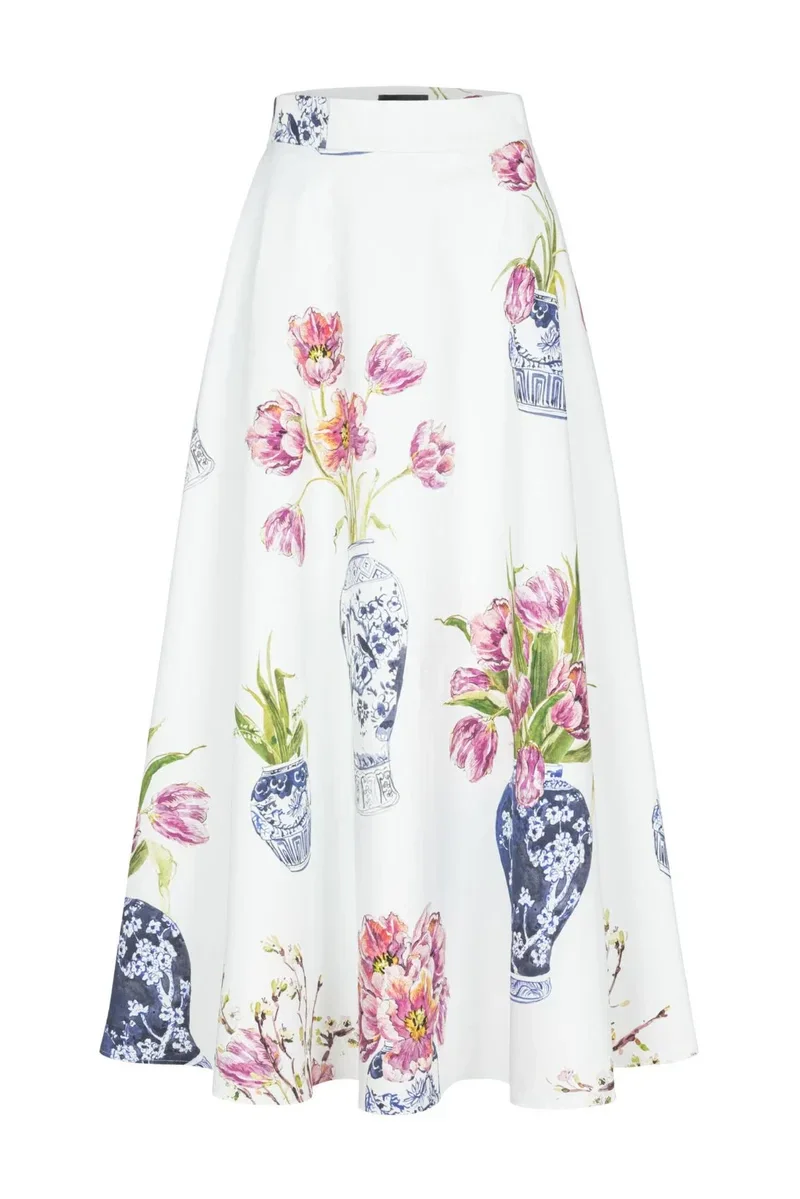 Witte basis, artistieke print – A-lijn model met zakken voor tijdloze charme